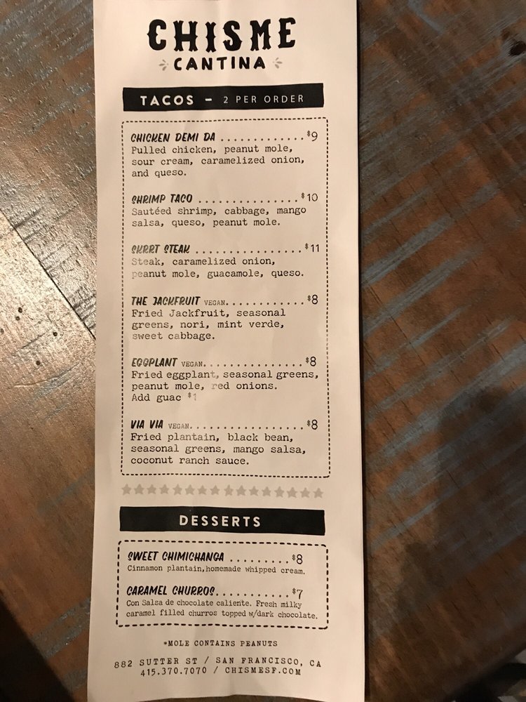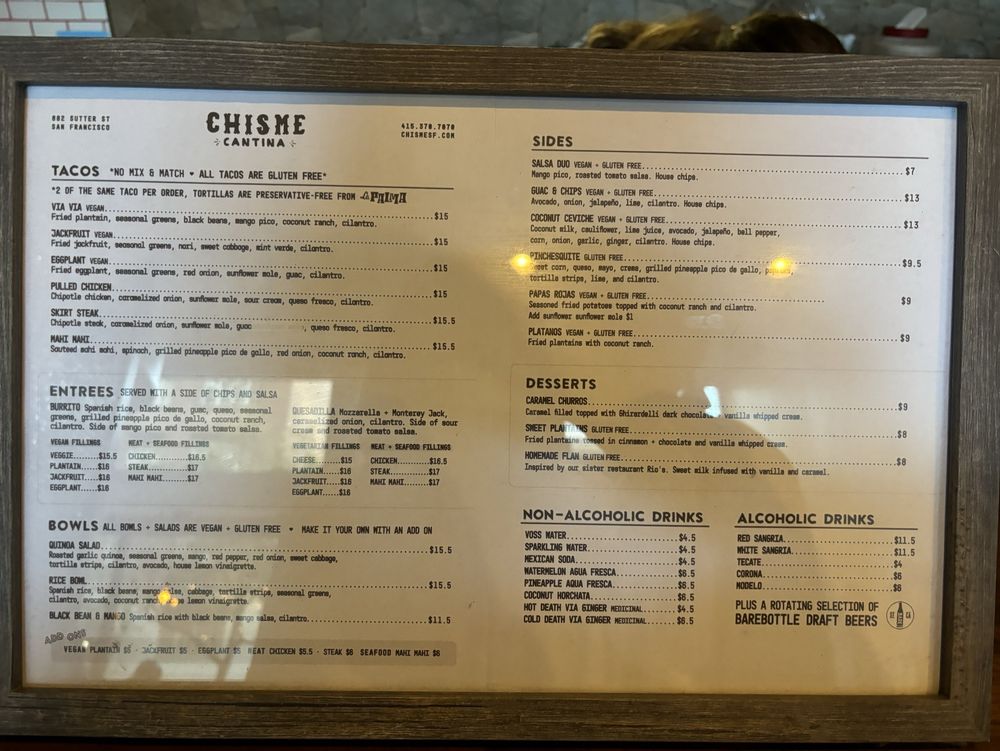 Welcome to Chisme Cantina, a vibrant taco haven located at 882 Sutter St, San Francisco. This Latinx-owned gem offers a delightful range of options, including pescatarian, vegan, and vegetarian dishes, all served in a trendy yet casual setting.